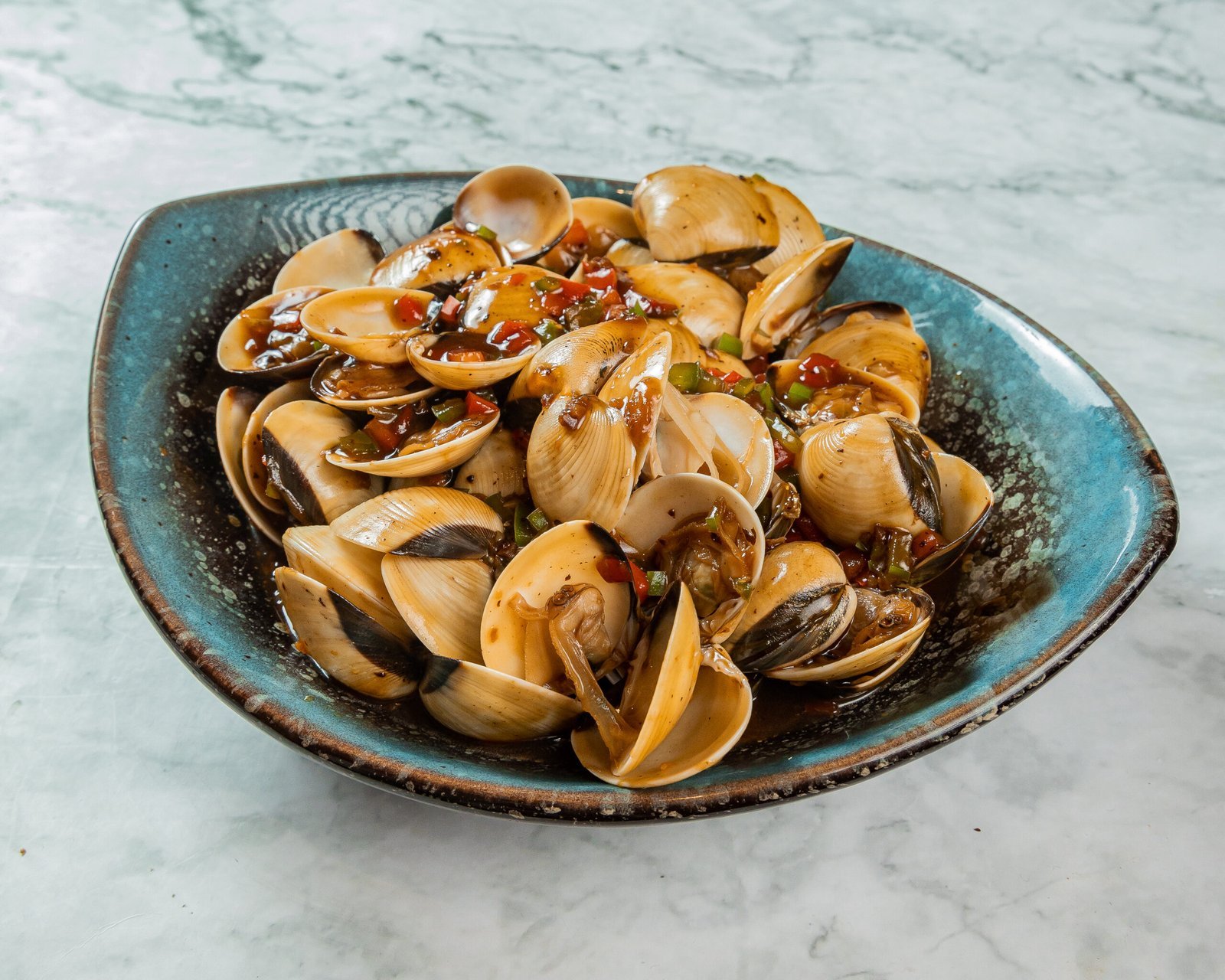 Almejas saletadas al wok con salsa de frijol negro.