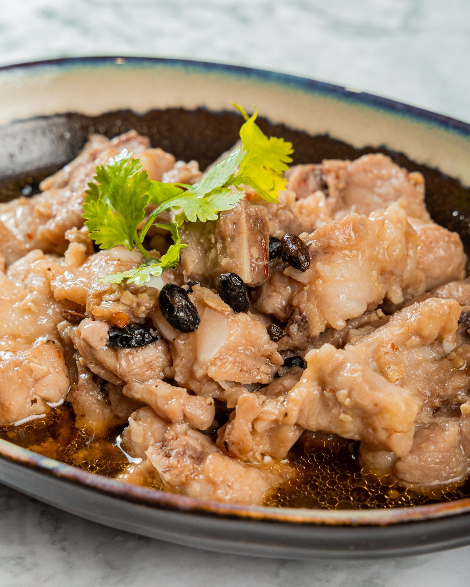 Costillitas de puerco al vapor marinadas con salsa de frijoles negros.